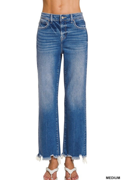 These trendy Zenana medium wash raw hem straight leg jeans will be your go to piece! Super cute, stretchy and flattering! Size up if inbetween, or need more room in the abdominal region! •10.25” Rise •28”Inseam